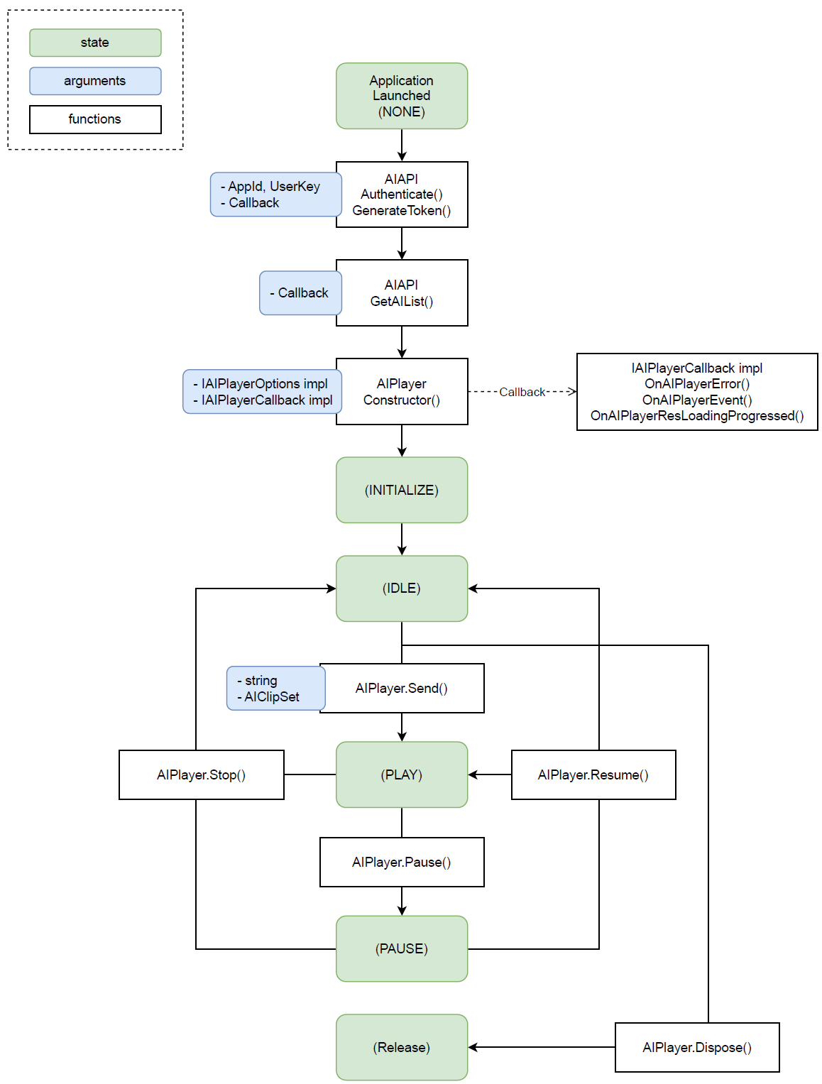 - It is recommended to call the Dispose() function of the object before destroying or terminating the AIPlayer. (AIPlayerViewModel is a Dispoable object.)